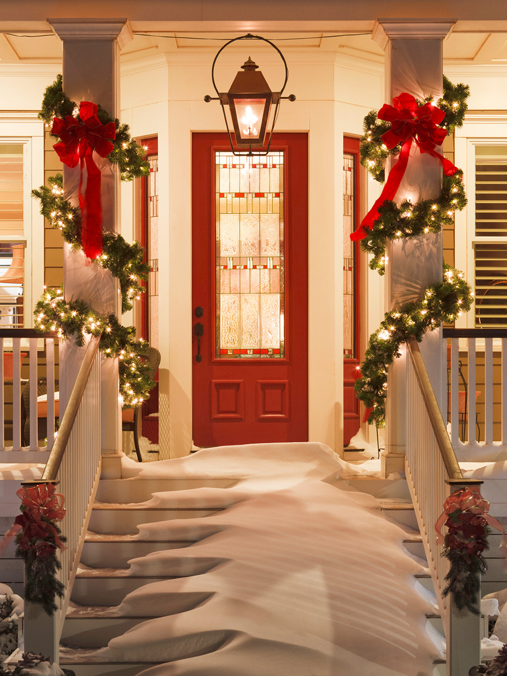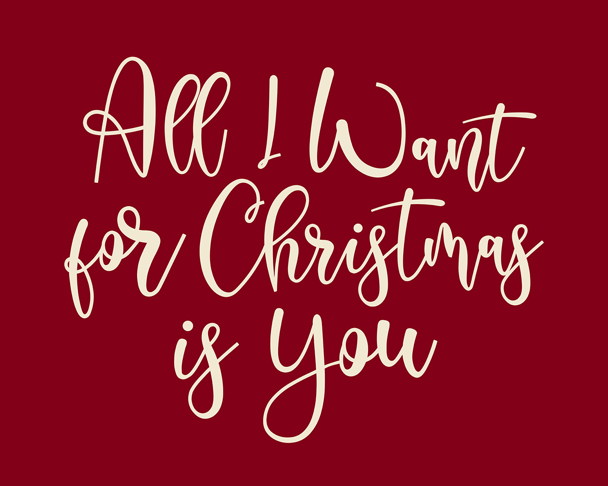A festive Christmas gallery wall with a decorated tree, pictures of Santa Claus, and holiday scenes with wrapped gifts.