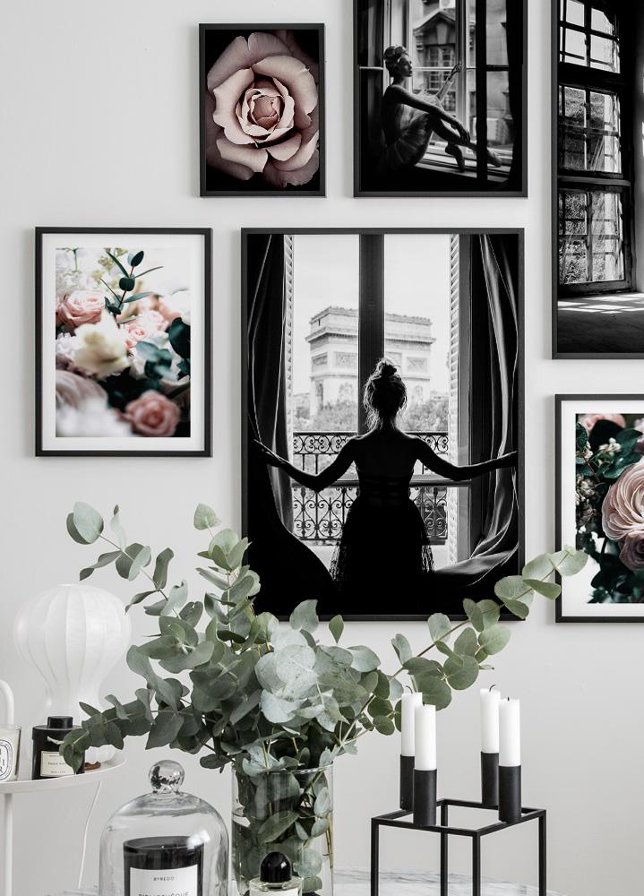 A colourful bouquet, that is somewhat blurry creating a very harmonious motive. The bouquet is made up of mainly light pink roses and some greenery.