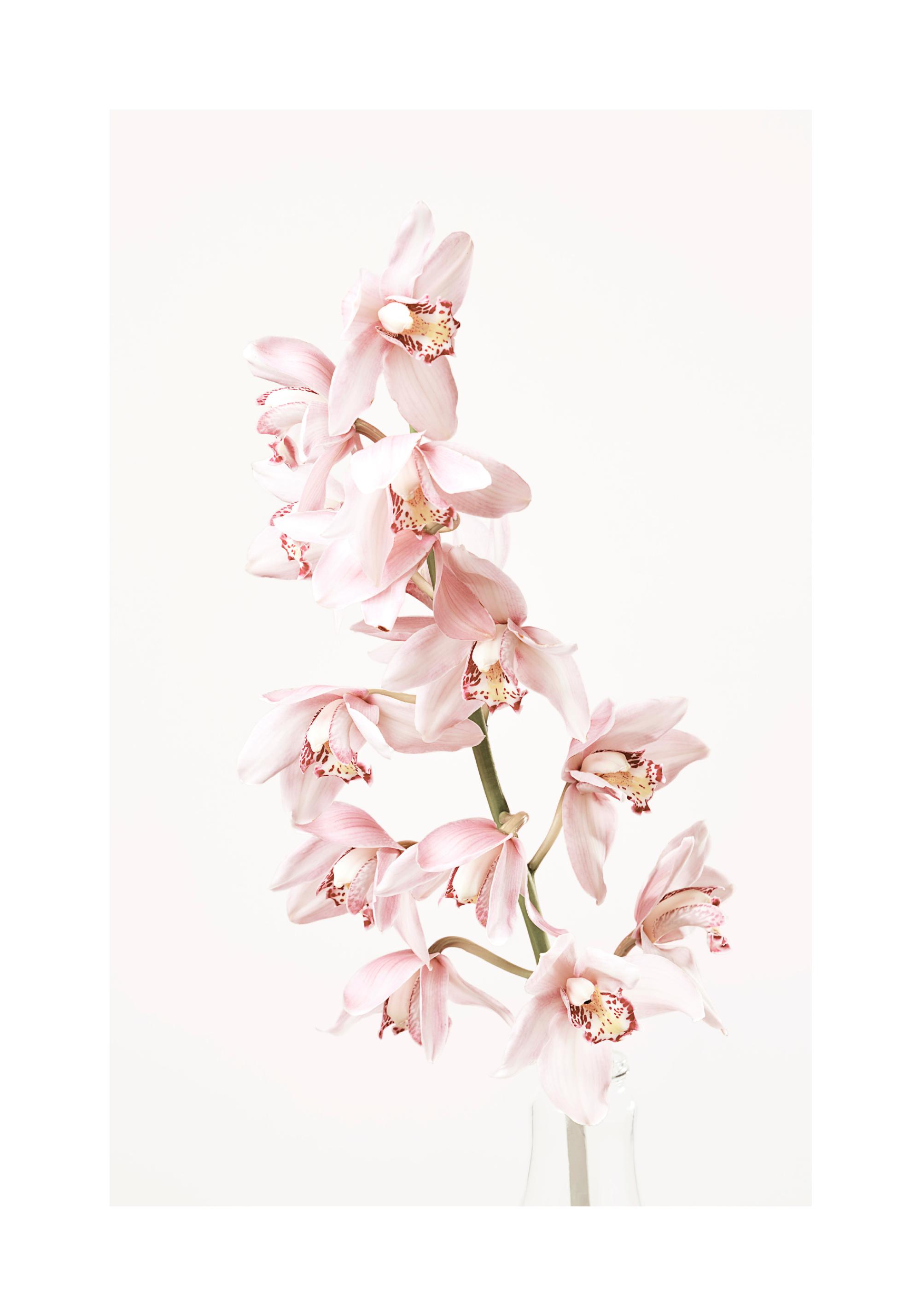 A delicate flower poster of a pink orchid against a light background. The elegant flower represents deep passion and expresses admiration for the recipient`s beauty. This graceful flower looks wonderful on its own as well as in combination with other floral posters.