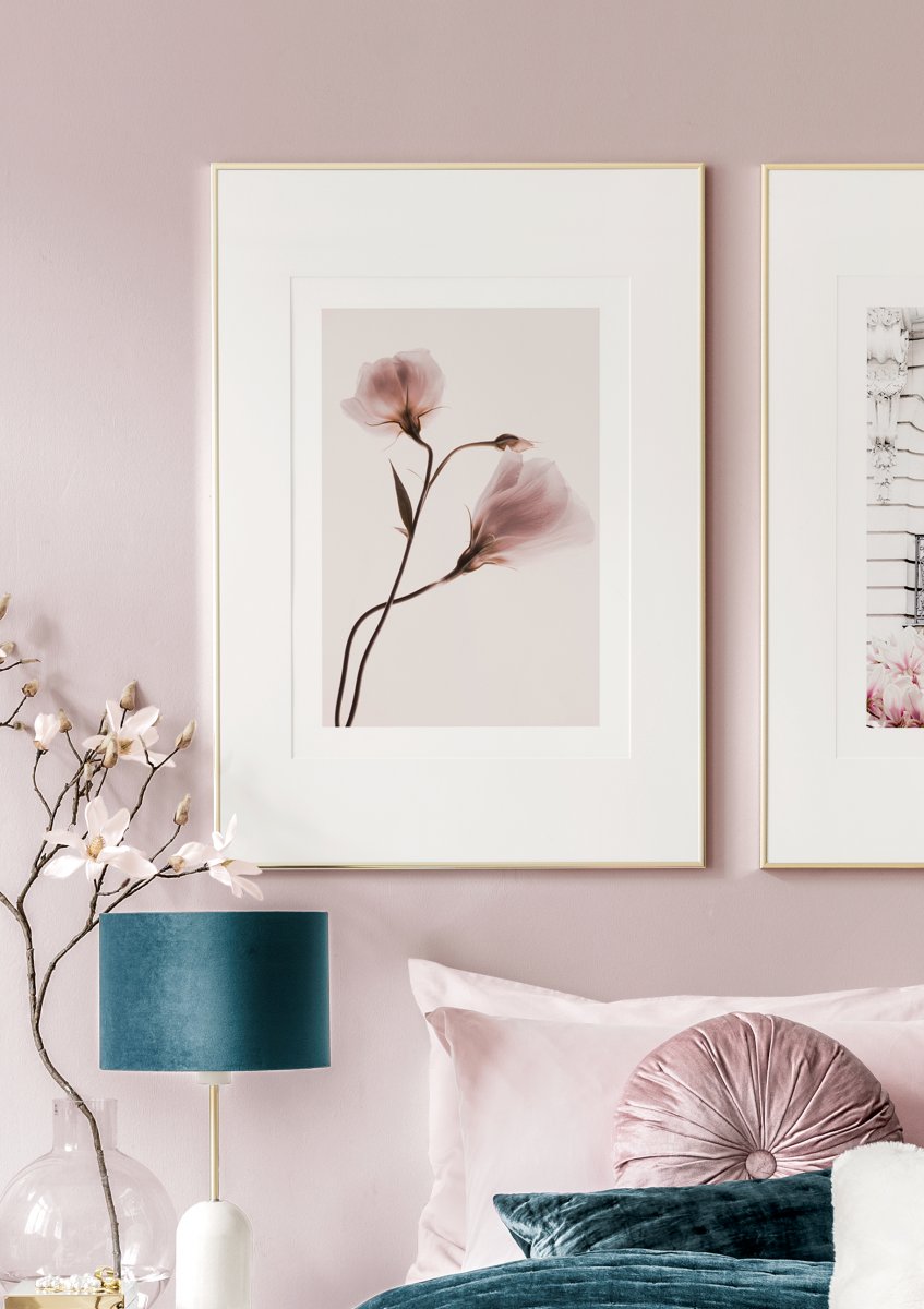A beautiful flower poster of two pastel coloured flowers in front of a light beige background. The poster fits perfectly with the 'Pink Pastel Flowers No2 Poster' or other flower and botanical posters. It gives your room a positive and stylish atmosphere.