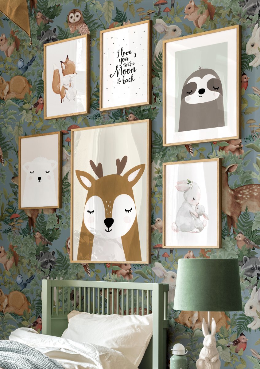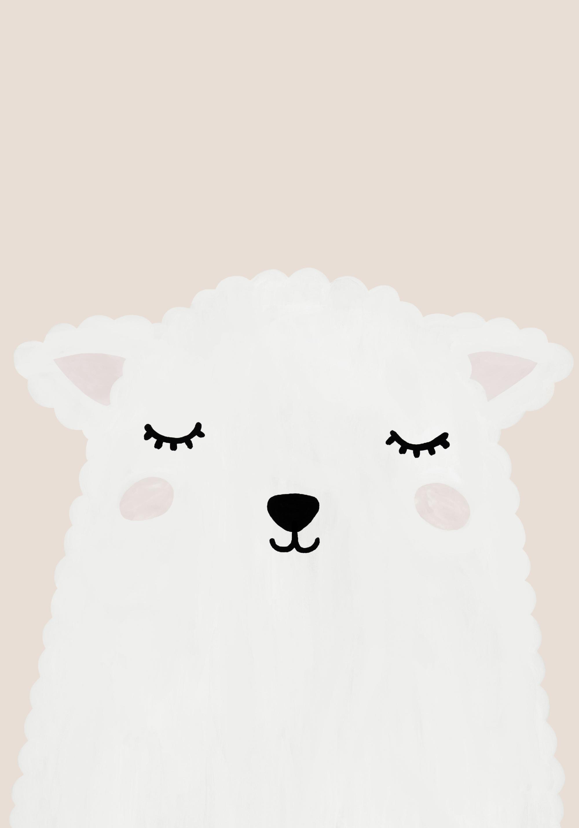 A charming children's print of a cute lamb in front of a pink background. The illustration can be combined with other kids prints and is a real eye-catcher in the children's room.