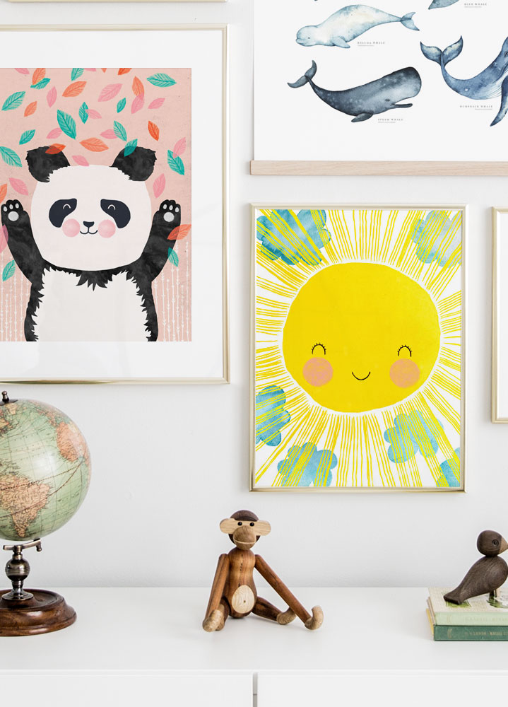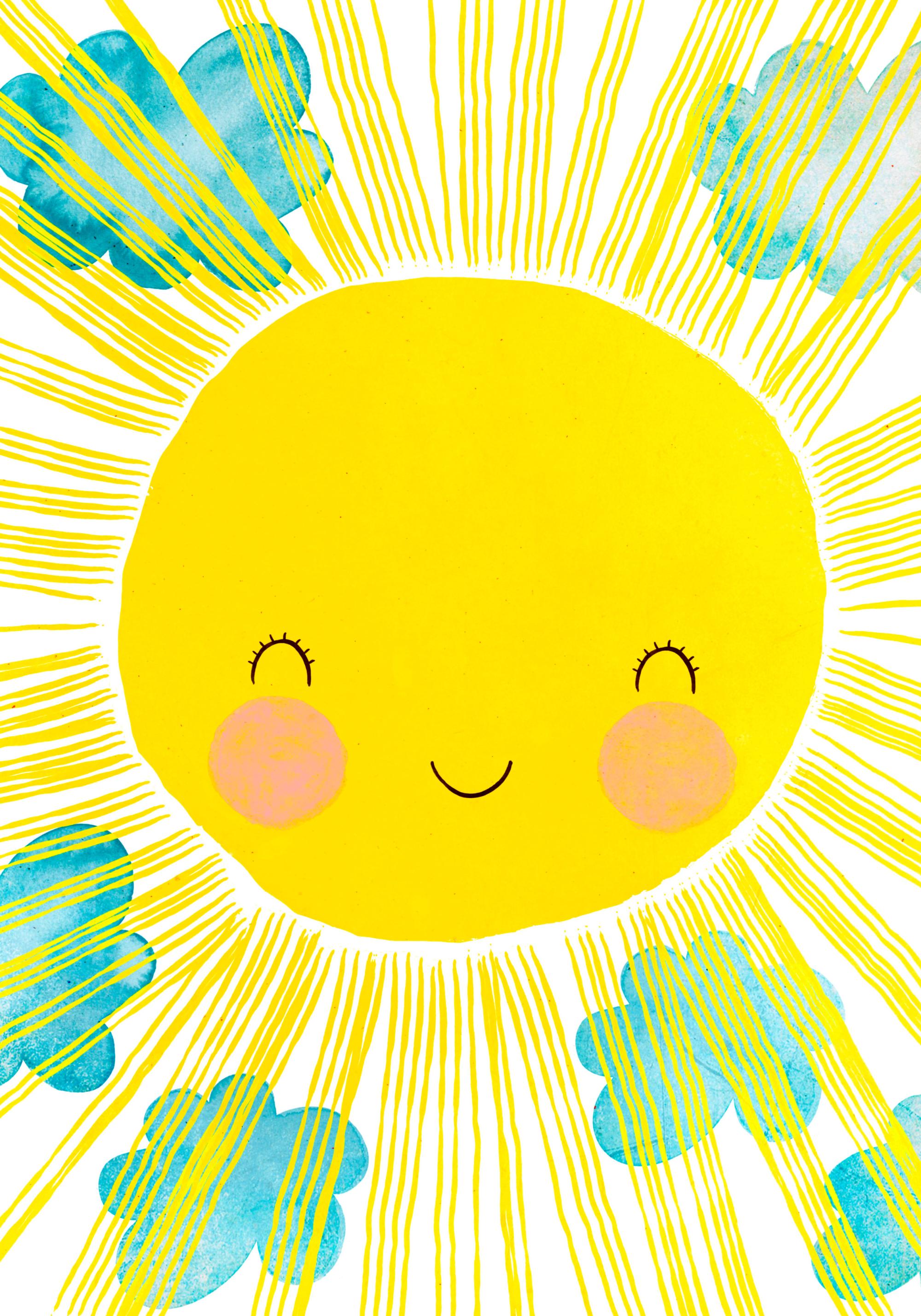 From $31Colourful children's poster of a bright, smiling sun. Behind the sun you can see small clouds passing by. The illustration was made by Swiss artist Nina, better known as Threechild. Nina's creative side started to show at a very young age as she was passionate about painting and photography. After a certain amount of time she started working with brands like Mercedes and Tchibo. With a playful curiousity Nina constantly searches for new perspectives. Her artwork is mainly characterised by its stunning imaginative depth as well as its use of beautiful colours.
