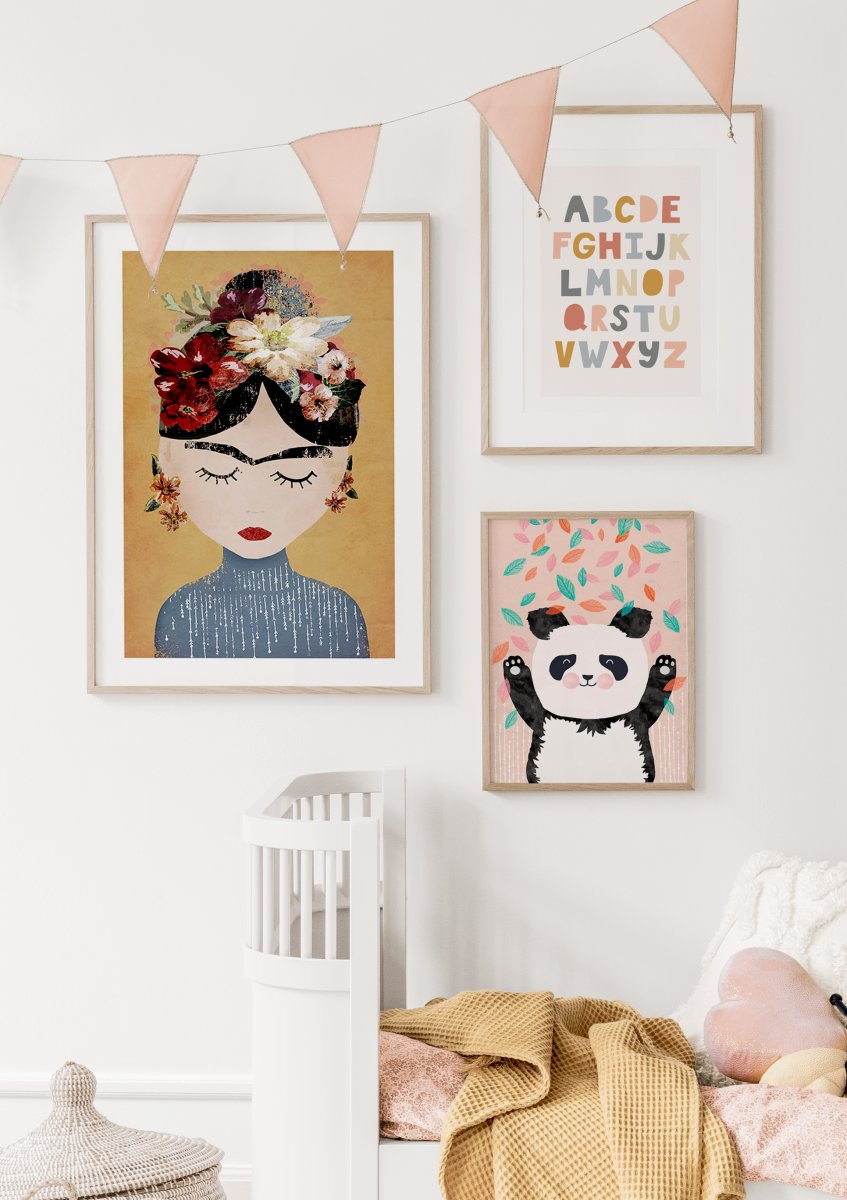 Colourful poster of a happy panda, stretching his arms in a rain of leaves. The illustration was made by Swiss artist Nina, better known as Threechild. Nina's creative side started to show at a very young age as she was passionate about painting and photography. After a certain amount of time she started working with brands like Mercedes and Tchibo. With a playful curiousity Nina constantly searches for new perspectives. Her artwork is mainly characterised by its stunning imaginative depth as well as its use of beautiful colours.