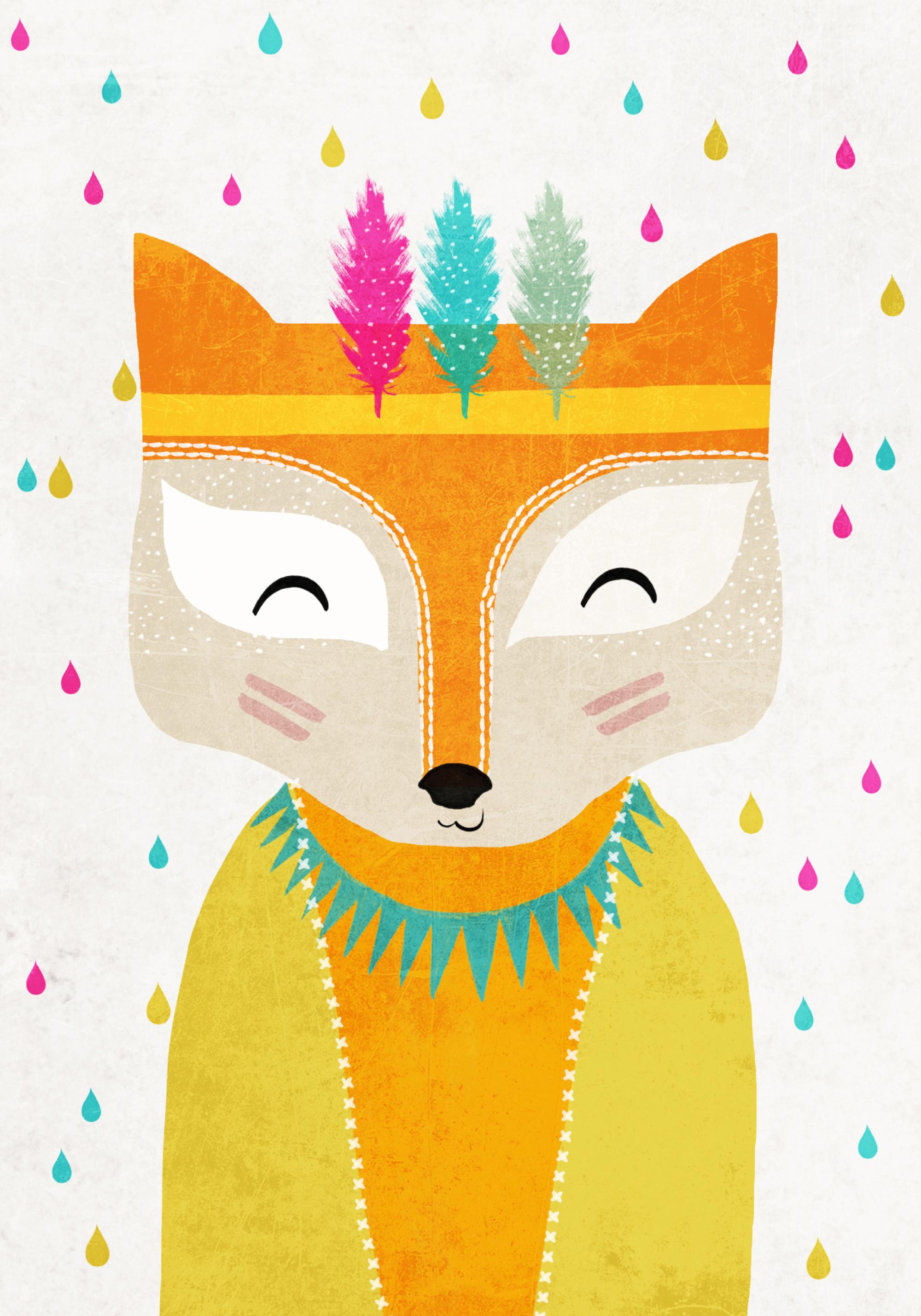 From $31Colourful children's poster of a fox wearing a minimalistic headdress. The illustration was made by Swiss artist Nina, better known as Threechild. Nina's creative side started to show at a very young age as she was passionate about painting and photography. After a certain amount of time she started working with brands like Mercedes and Tchibo. With a playful curiousity Nina constantly searches for new perspectives. Her artwork is mainly characterised by its stunning imaginative depth as well as its use of beautiful colours.