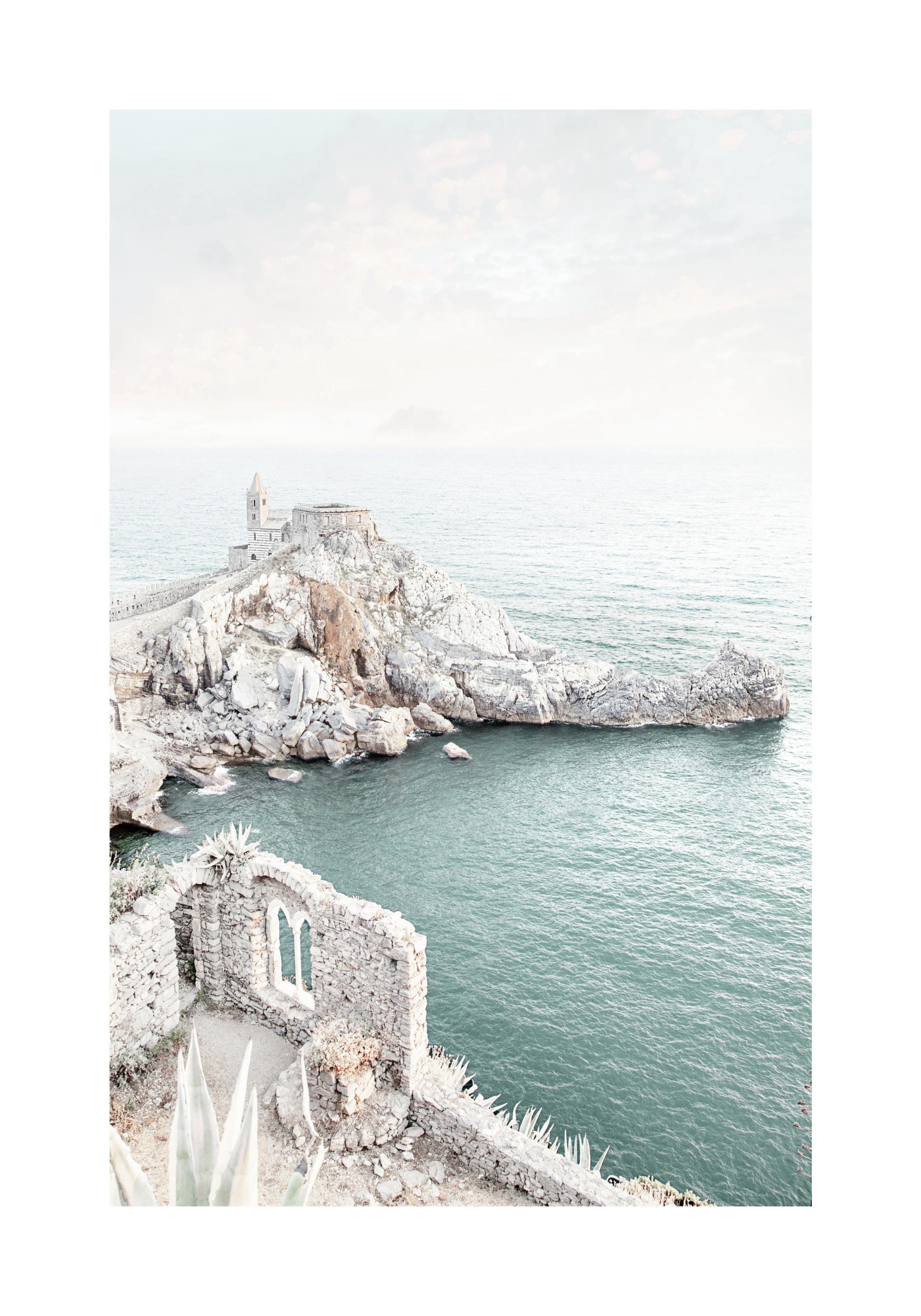 From $31A fantastic landscape poster of the Porto Venere coast in Italy with a spectacular view of the small church St. Pietro. The church is enthroned on a rock above the wonderful blue sea. Get your favourite Italian places into your home!