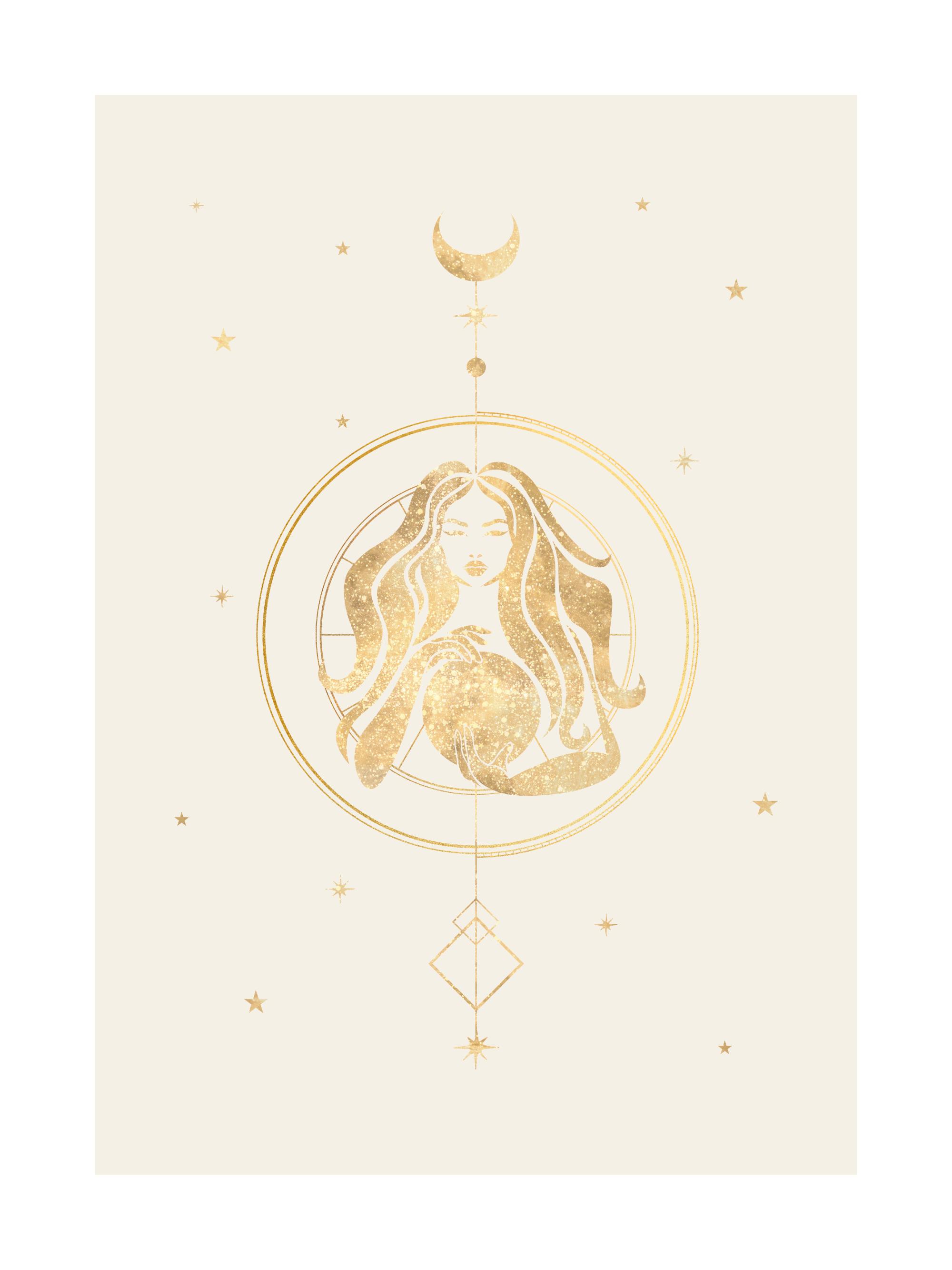 From $7.48A zodiac sign illustration with the sign of the Virgo in gold and gold symbols around it, on a beige background. Creating a gallery wall is a perfect job for the practical Virgo, and this zodiac poster should have a given place in the project!