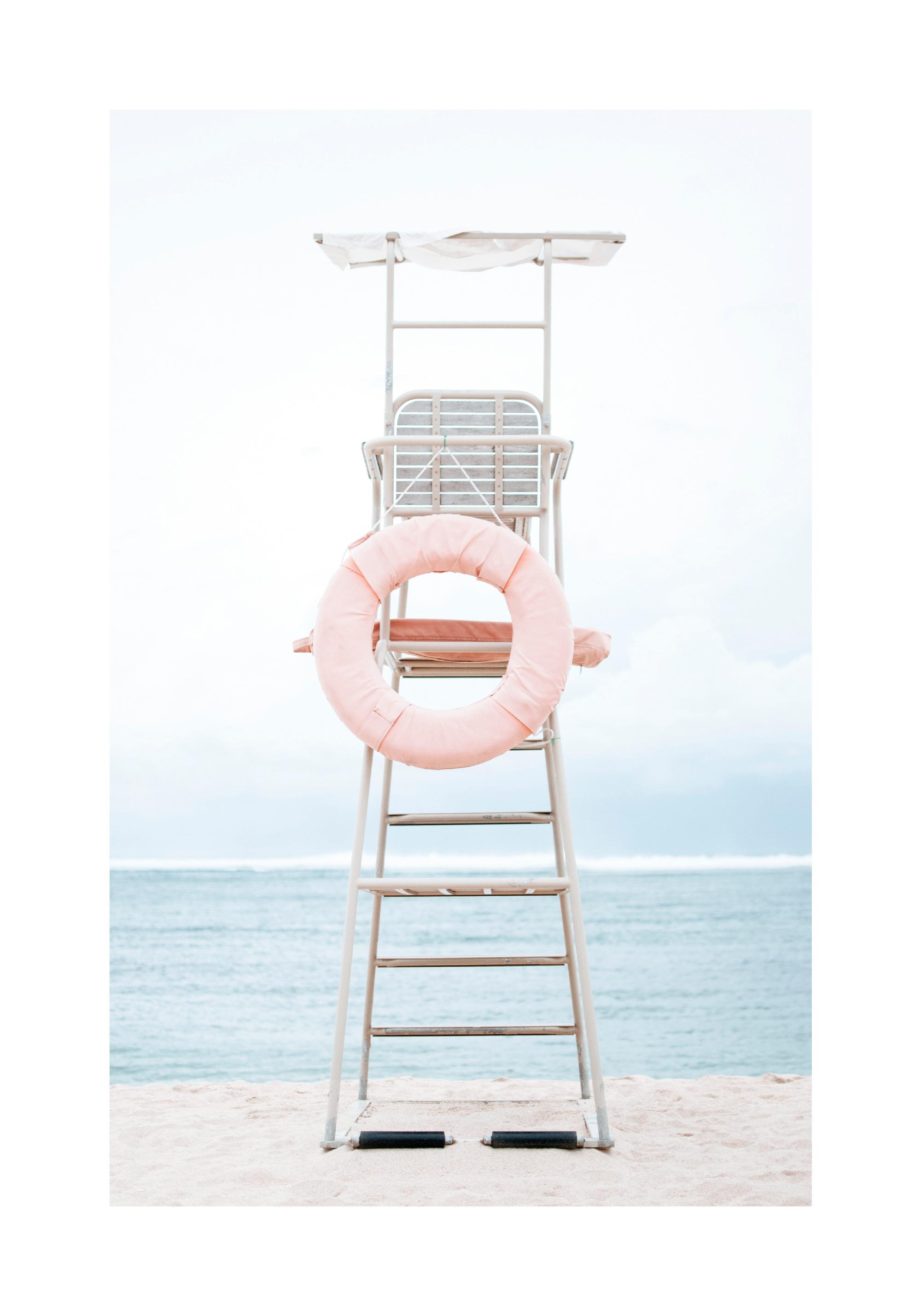 From $31A pastel-coloured beach poster of a lifeguard's high seat on the beach with a sea view. A pink lifebuoy hangs from the high seat. Combine this photo print with the 'Under the Sun Poster' to create an even more summery feeling in your home.