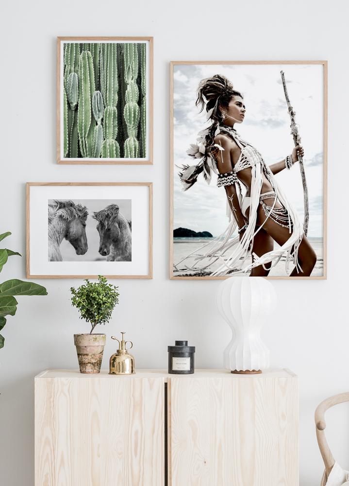 From $31Pretty photo poster of a woman dressed like a female warrior, wearing feathers and jewels and holding a wooden stick. Inspired by the Amazons, a mythical tribe of women warriors, dressed in short tunic outfits with a revealing slit in their tops . They often wore a belt and bracelets, earrings and necklaces for decorative purposes.