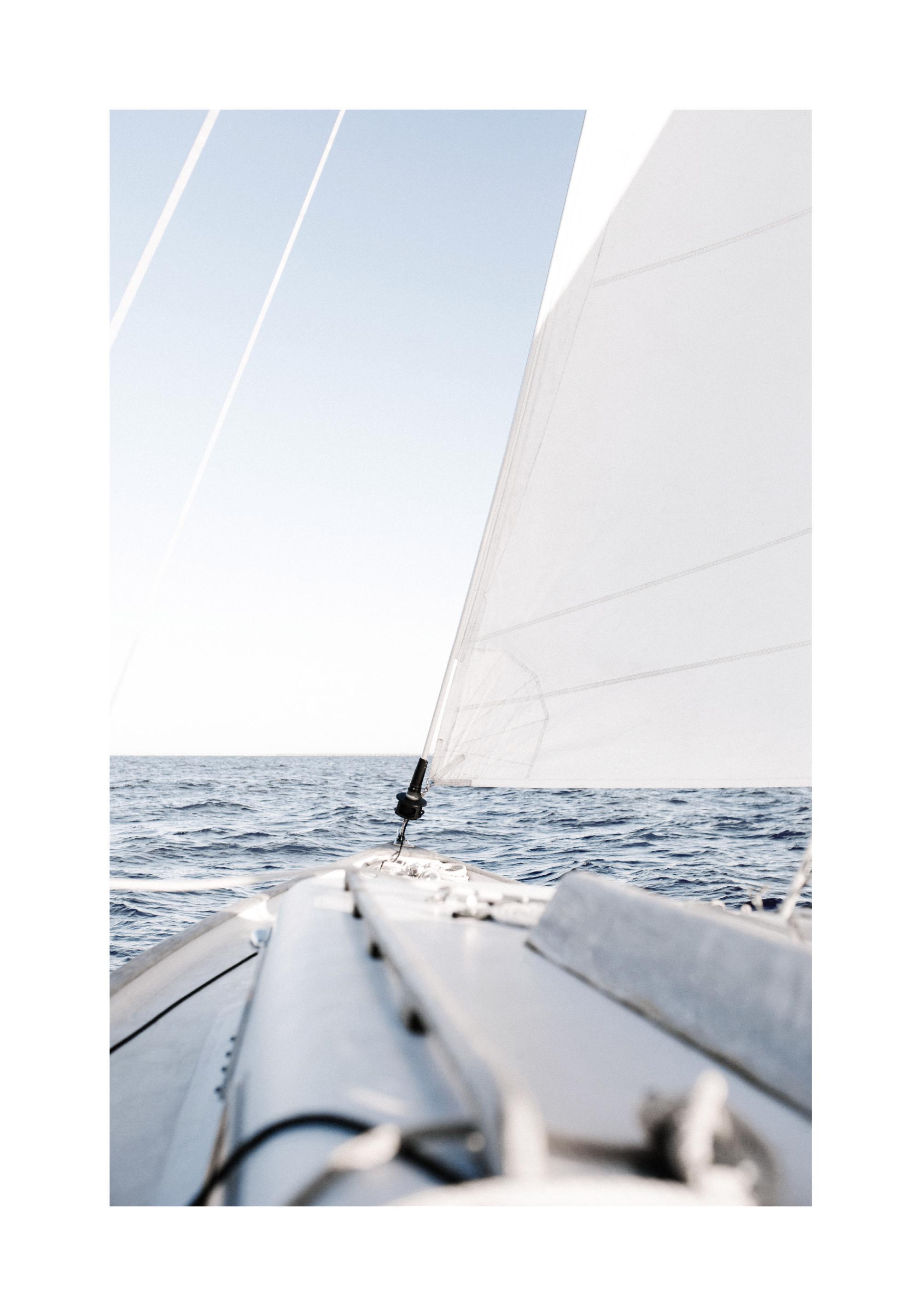 A fantastic photographic poster of a sailboat on the open sea. The wind blows through your hair, you feel the gentle waves and see the seemingly endless horizon in front of you. The English poet Thomas Traherne once said: 'You never enjoy the world aright, till the Sea itself floweth in your veins, till you are clothed with the heavens, and crowned with the stars'.