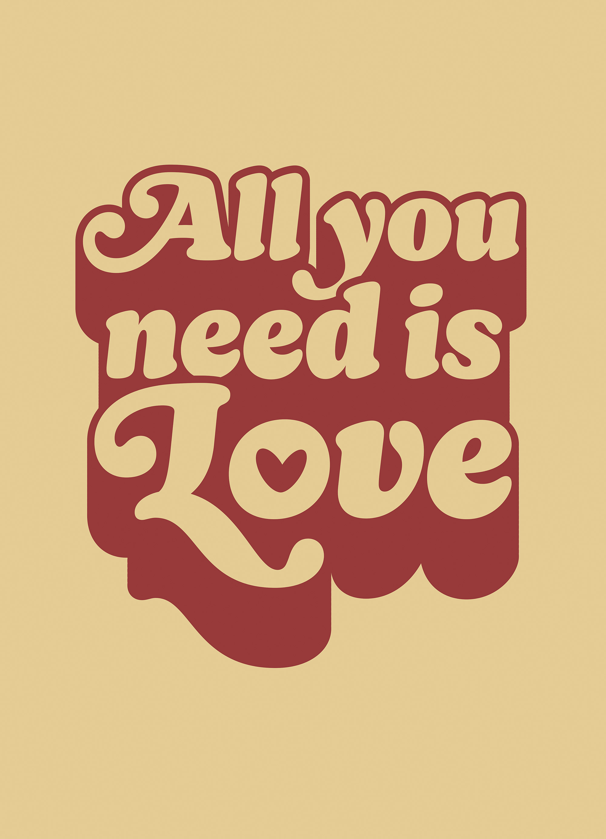 Retro poster with the text "All You Need Is Love" in a vintage style design.