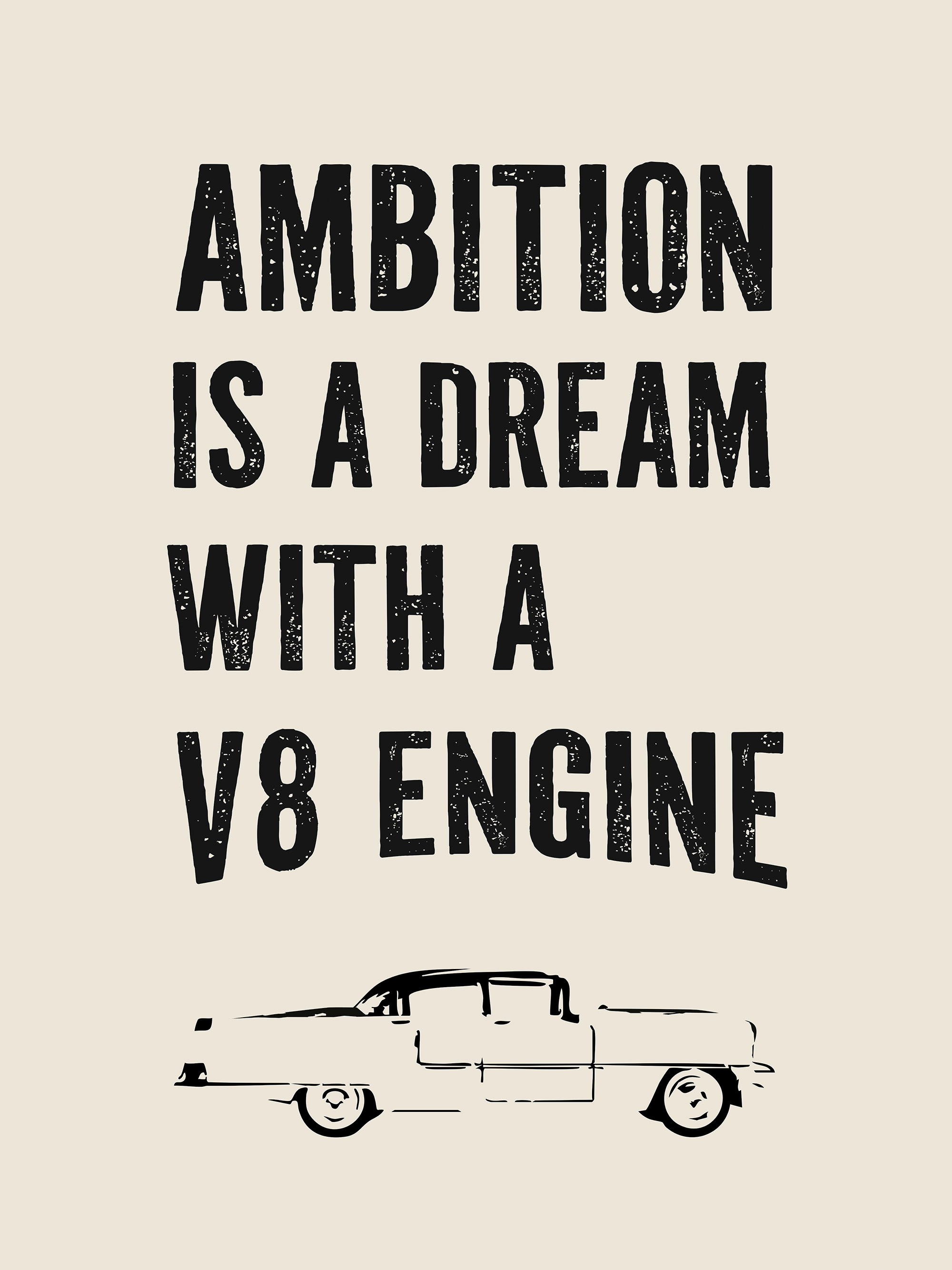 Motivational poster with the text "Ambition Is a Dream". Perfect wall art to inspire and motivate in your home or office.
