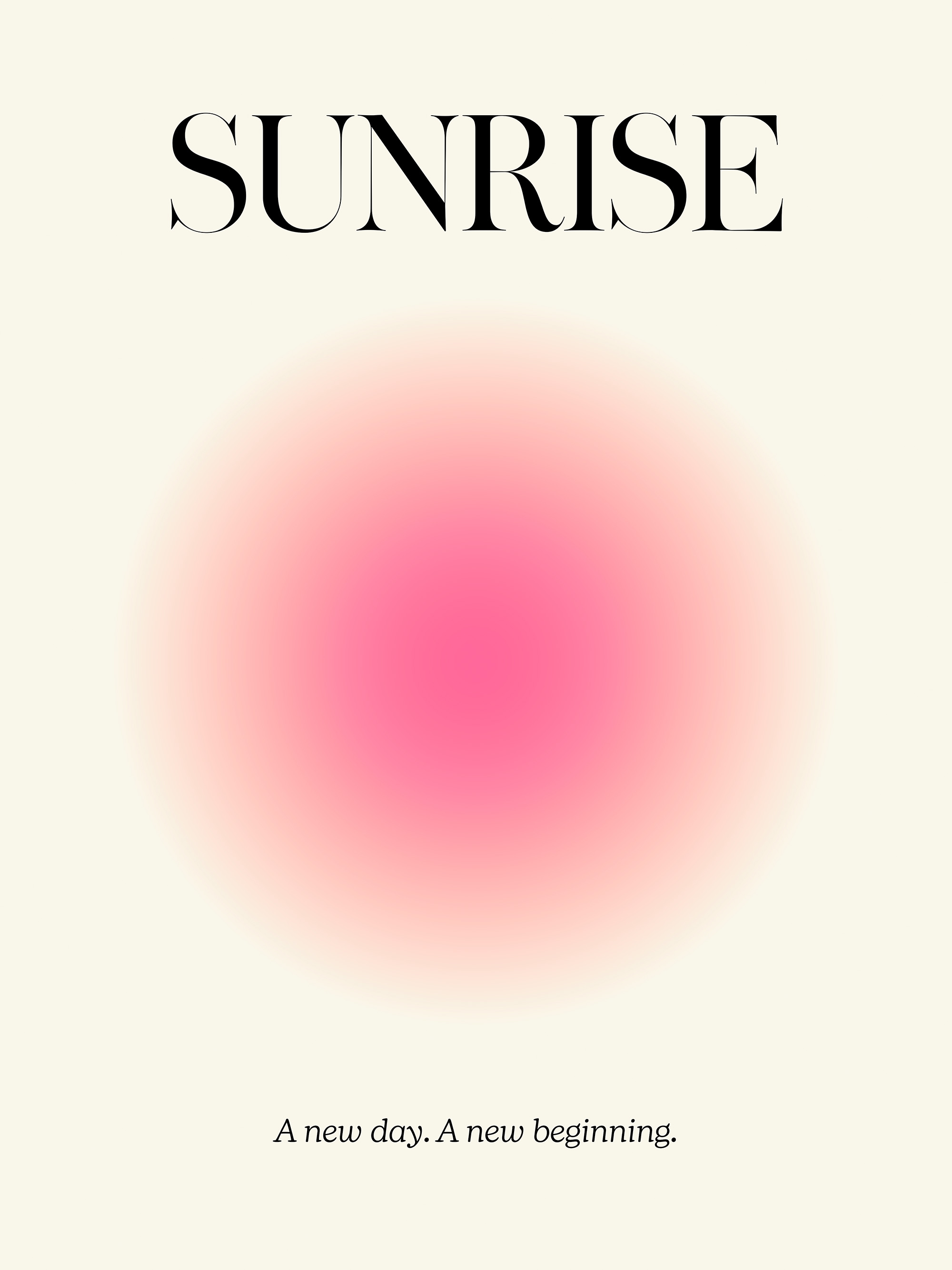 Aura Sunrise poster with warm colours and a beautiful sunrise design. Perfect print to brighten up your wall.
