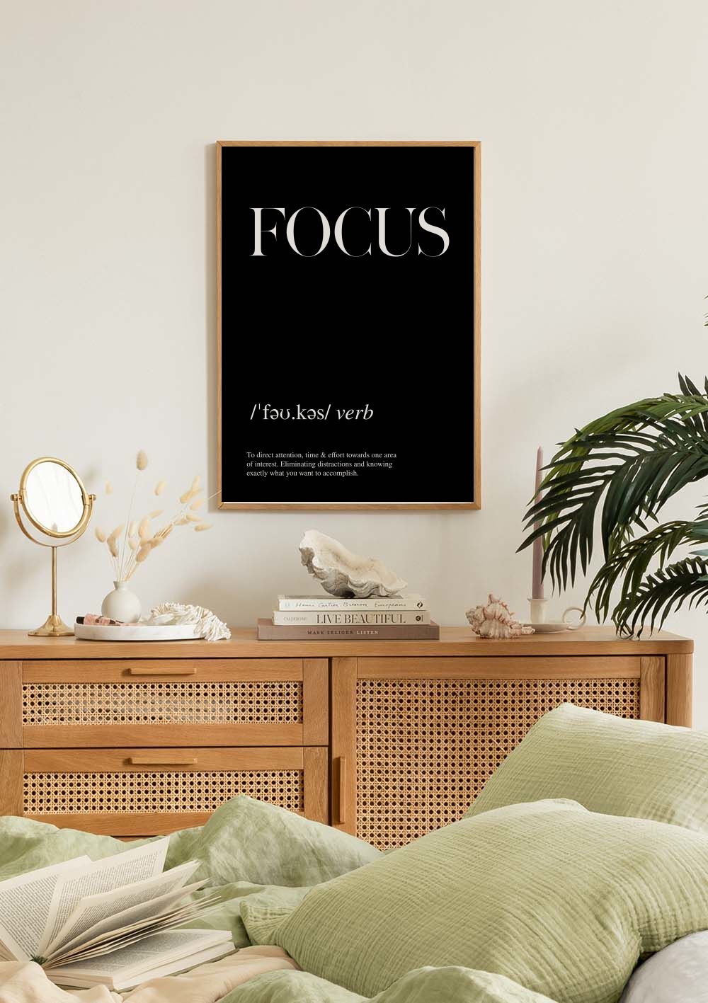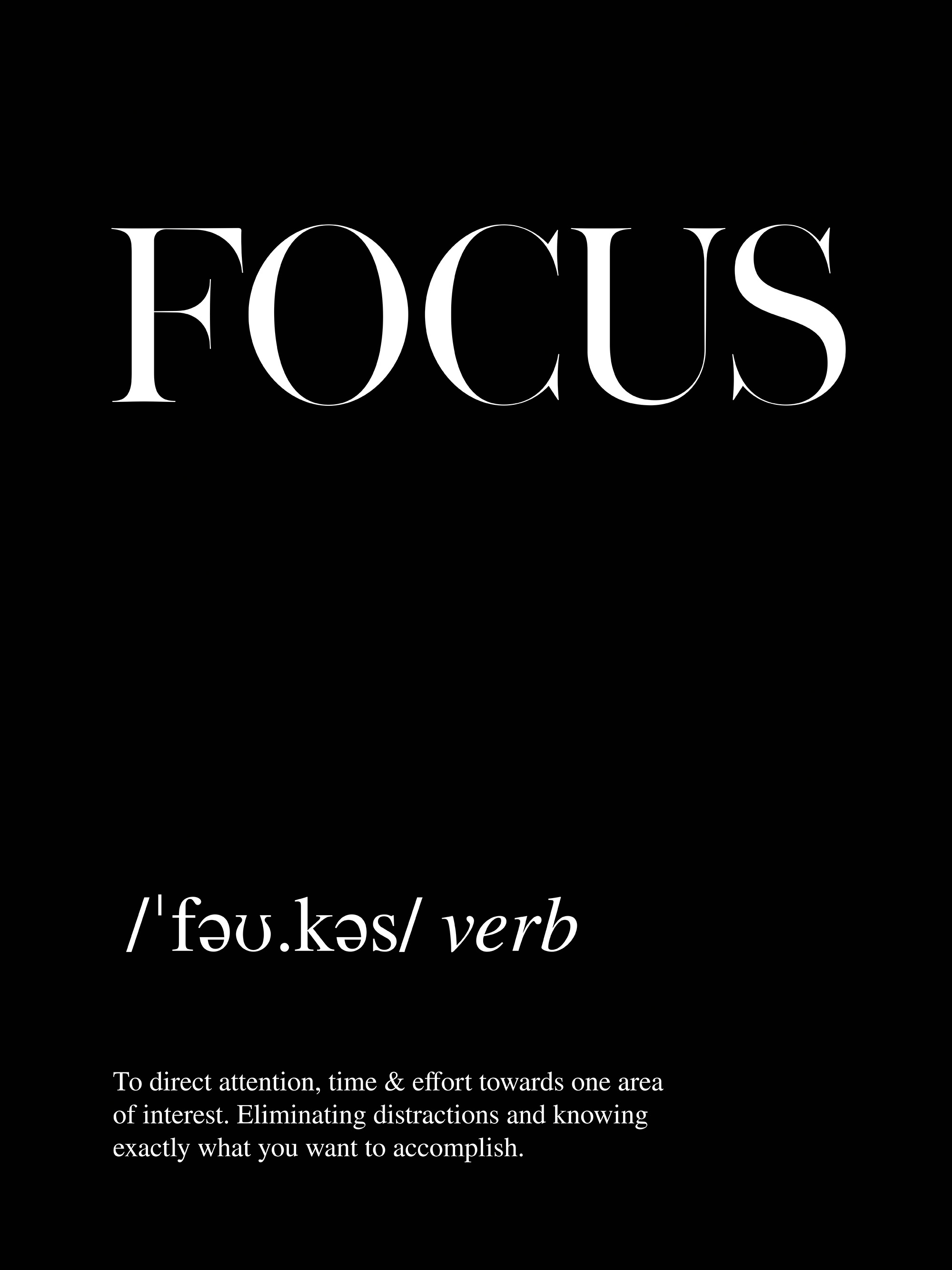 A black and white poster with the word "Focus" and its definition. Perfect for your office or workspace.