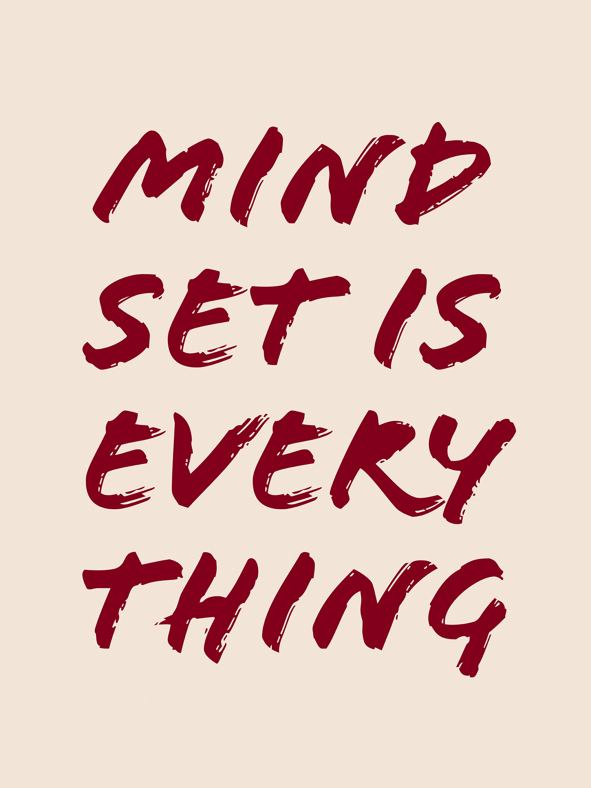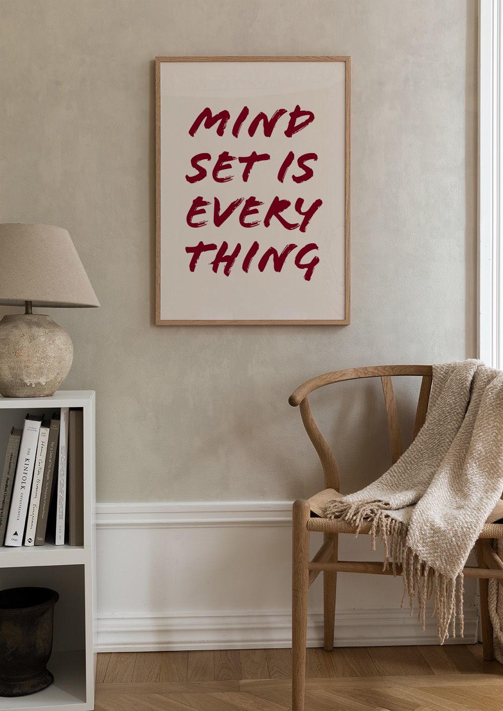A motivational poster with bold red text on a beige background that reads "Mind Set Is Everything". The brush-style letters have a painted look, perfect for adding inspiration to your home or office.