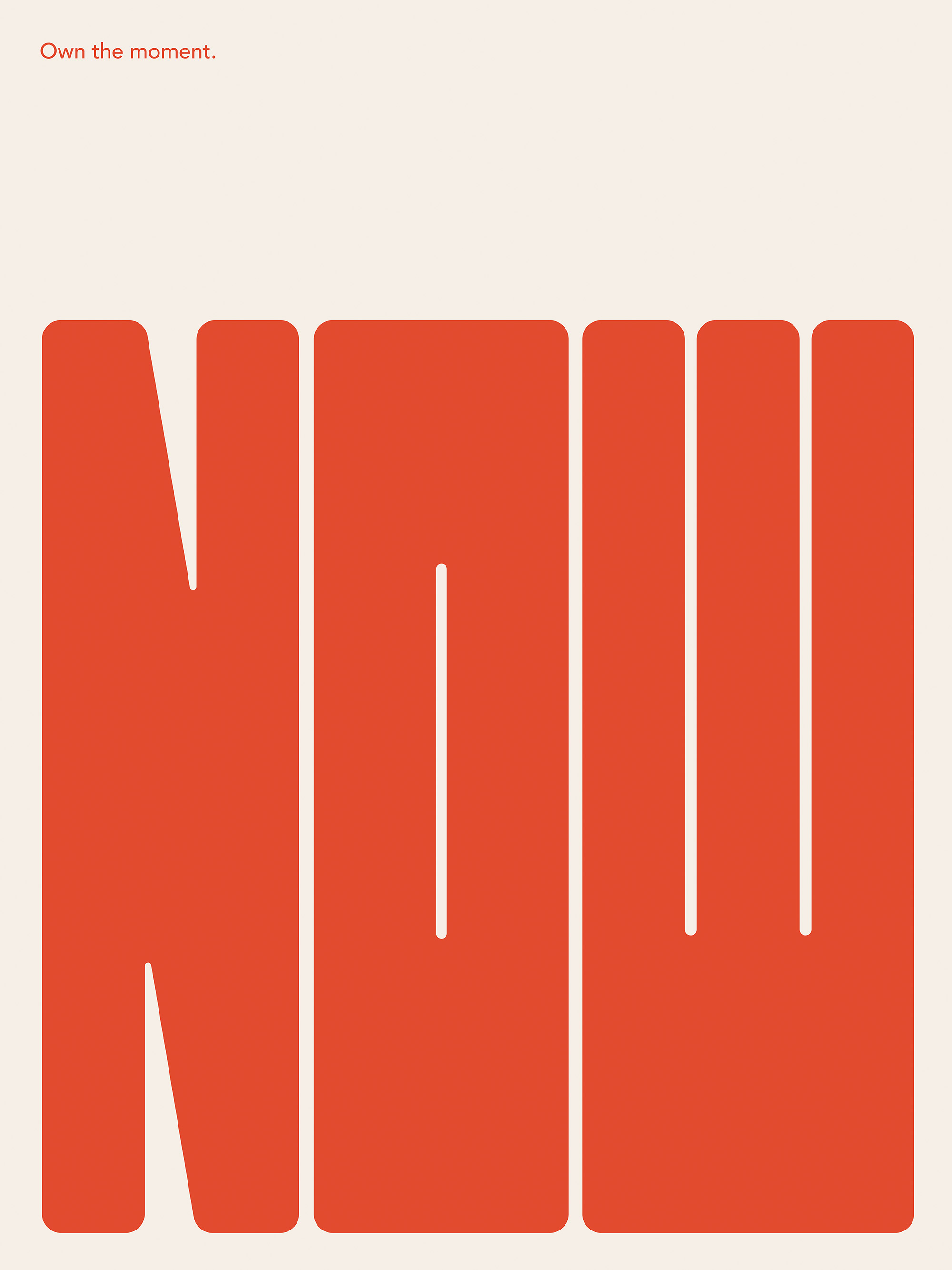 A bold print with the word "NOW" in large orange letters on a light beige background. A simple and modern poster with a striking look.