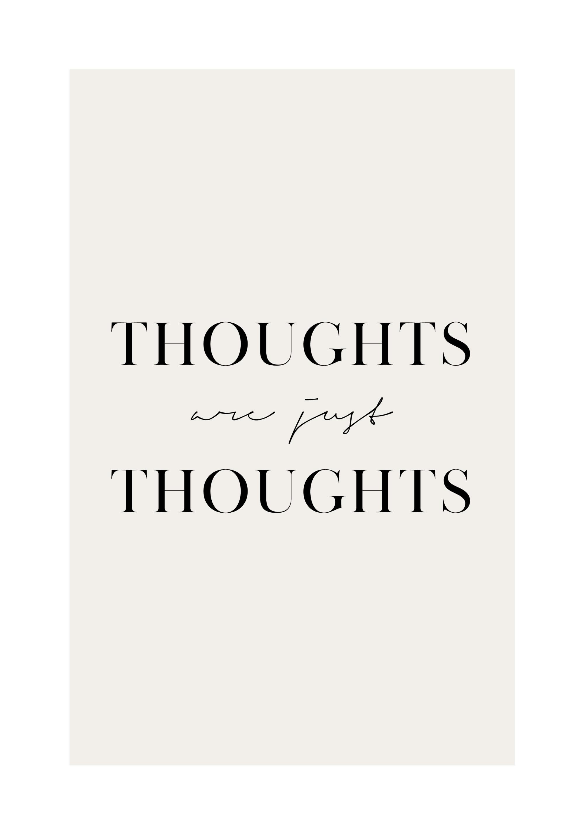 From $31Quote print with the text 'Thoughts Are Just Thoughts' in black text and beige background. A text print is the best addition on a gallery wall, or as a small accessory on your drawer.